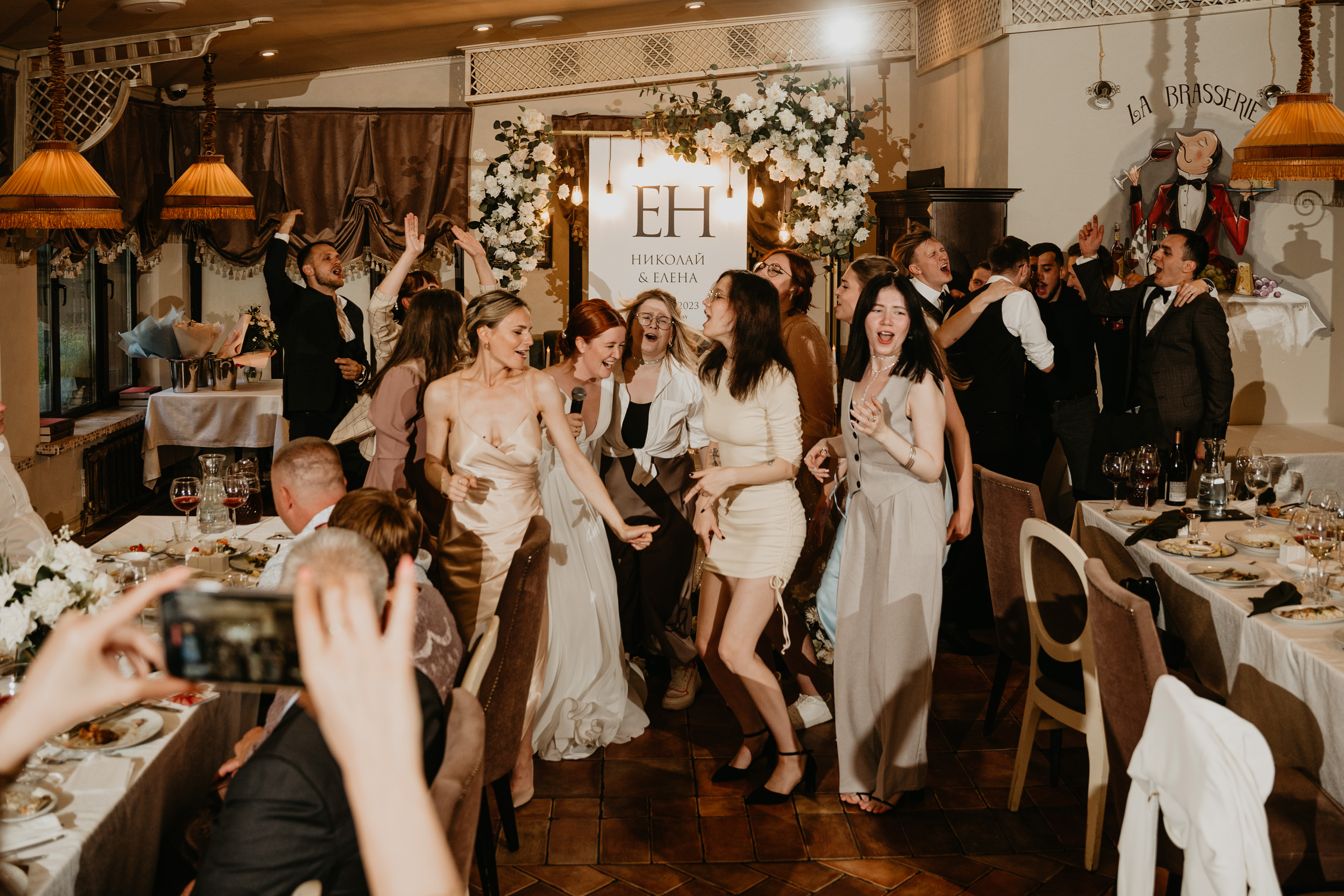 Пакет включает в себя банкетное меню на 35 гостей, декорирование зала, горку из шампанского и номер для молодоженов.